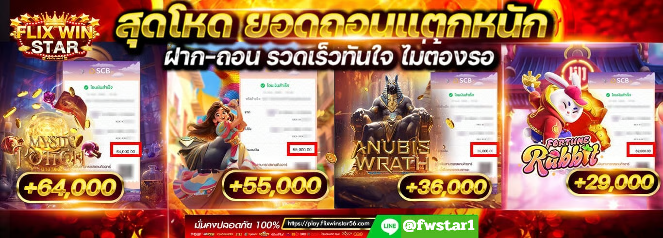 ระบบการฝาก-ถอนที่รวดเร็วและปลอดภัยก็เป็นอีกจุดเด่นของ Flixwinstar โดยเฉพาะโปรโมชั่นฝากไม่มีขั้นต่ำ และถอนได้ไม่จำกัดจำนวนครั้งต่อวัน ทำให้คุณสามารถจัดการเงินในบัญชีได้อย่างคล่องตัว ไม่ต้องกังวลเรื่องการรอนานหรือติดเงื่อนไขยุ่งยาก